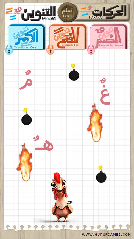 هي أن يلتقط الحيوان الحرف عند نزوله وسيمع صوت الحرف مع حركته وسيتجنب القنابل وكرات النار وعند التقاط الحرف سيُنطق الحرف مع حركته وفي كل مرحلة 30 سؤالًا.